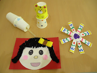 冬休みには、福笑いやおみくじ作り、ブンブンゴマ等の